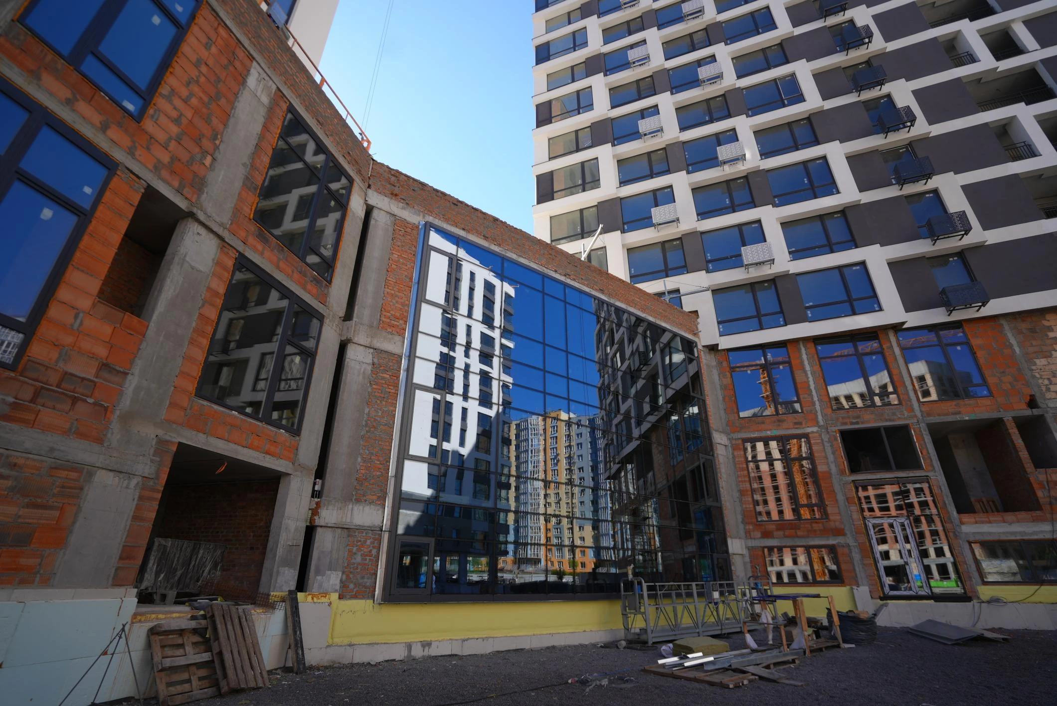 - construction of walls and partitions on the 10th, 11th, 12th floors - 40%.